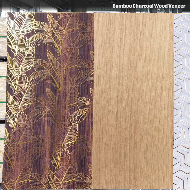 Waterproof and environmentally friendly bamboo charcoal wood grain wood veneer combines advanced waterproof technology with the natural advantages of bamboo charcoal to create a transformative and sustainable interior design solutionNotre placage en bois au charbon de bois présente une texture et un motif authentiques, ajoutant une touche de beauté naturelle et de chaleur aux espaces de vie.Nos placages innovants sont équipés d'une technologie d'étanchéité avancée, assurant que les surfaces sont protégées contre les dégâts d'eau, les déversements et les problèmes liés à l'humidité.Le bois de bambou est injecté dans le placage pour purifier activement l'air, promouvant un environnement de vie plus sain et incarnant la conscience écologique.Les panneaux de placage en bois sont fabriqués à partir de ressources durables en bambou, conformément aux pratiques respectueuses de l'environnement., ce qui en fait un choix écologique pour une vie responsable.